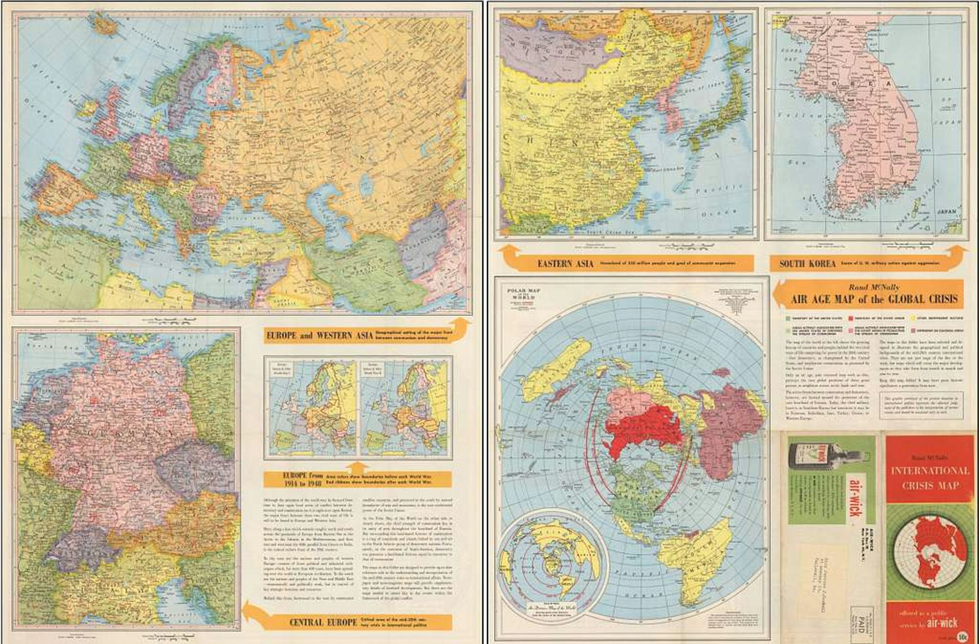 This 1950s map published by Rand McNally was produced as part of a marketing campaign for Airwick air freshener, but also sought to inform the US public about the spread of communism. Rand McNally