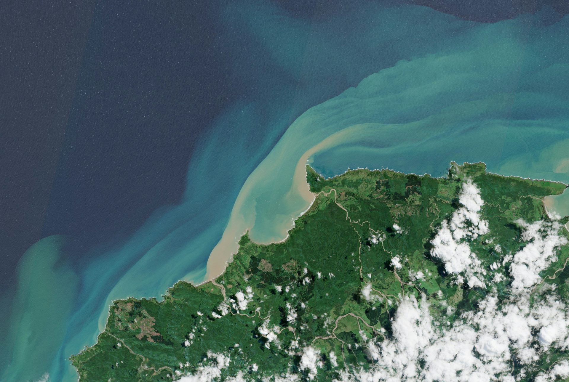Heavy sediment runoff around Waihau Bay, in New Zealand’s Eastern Bay of Plenty. This was observed following Cyclone Gabrielle on February 14, 2023 - an event that created marine darkwaves for several weeks, with continuing ecological impacts. Copernicus Sentinel data (2023), CC BY-NC-SA